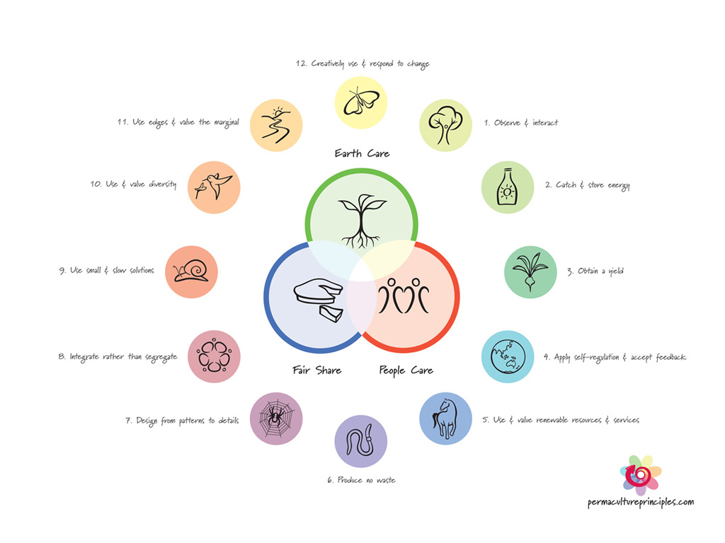 Die Permakultur kann hierauf vielfältige Antworten geben, aber besser noch: Sie bietet uns eine Vielzahl an Gestaltungsprozessen und Analysemethoden, um Systeme so zu verändern und zu entwickeln, dass sich selbst erhaltende, organische Kreisläufe entstehen. Ursprünglich für die Landwirtschaft entwickelt, hat sie sich inzwischen zu einem Denkprinzip entwickelt, welches Brücken bildet über die Landwirtschaft hinweg zu Bereichen wie Hausbau, Energieversorgung, Landschaftsplanung bis hin zur Gestaltung sozialer Räume.